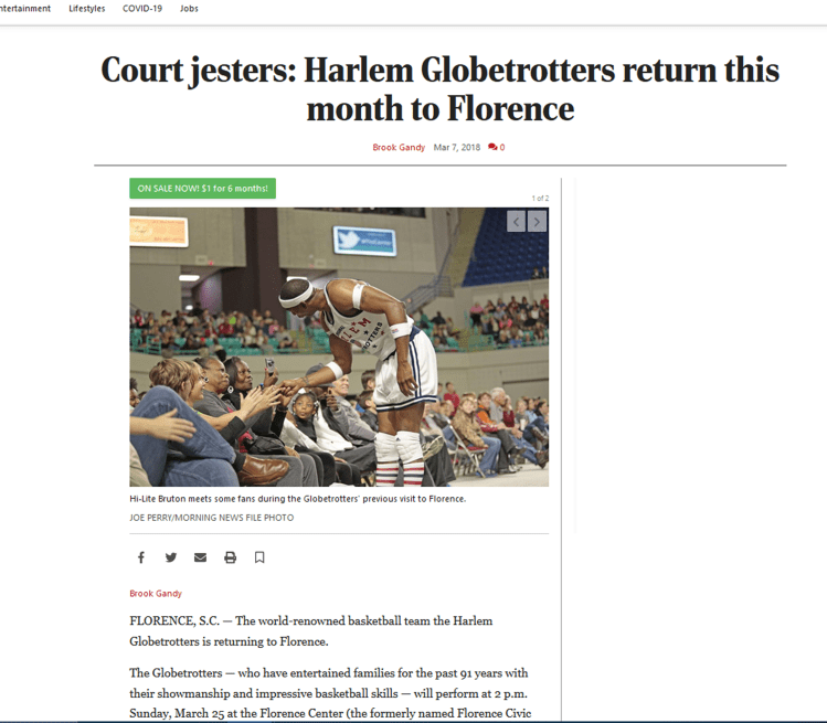 A preview of the upcoming performance by the Harlem Globetrotters.